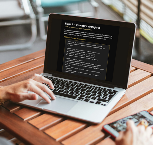Un système. Un ensemble structuré d'outils, de prompts et de méthodes qui te guident pas à pas, du choix de ton modèle e-commerce jusqu'au lancement de ta première campagne publicitaire.